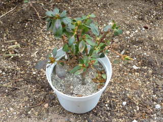 植え替えと剪定ツツジの仲間は酸性土壌を好みアザレアも同じです。使う用土は酸性土の鹿沼土や酸度無調整のピートモスを利用すると生育がよくなります。鉢に根が詰まると夏に水切れしやすいので、毎年を植え替えを行っておくと安心です。時期は花後の4月から5月頃、用土は鹿沼土7、PH無調整のピートモス3ぐらいです。根鉢を3分の1ぐらい崩して新しい用土で植え替えます。 植え替えと同時に、樹形を整えるように剪定します。剪定には強い方なので、必要なら半分ぐらい刈ってもよいです。