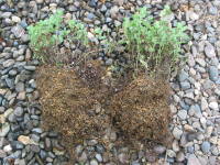 水やり鉢土の表面が乾けば与えます。高温多湿に弱いので、梅雨などの長雨には当てないよう軒下などに置きます。水の与え過ぎにも注意してください。肥料多肥を嫌うので肥料の与え過ぎには注意してください。春の3月〜5月頃、秋の9月下旬頃に緩効性の化成肥料を与えるぐらいでかまいません。植え替え根詰まりすると夏に根腐れしやすいので毎年植え替えます。秋の9月下旬頃か春の3月頃にも行えます。夏の高温多湿に弱く普通の用土では夏に枯れてしまう事がありますが、山野草の土に植え替えると調子がよいです。鉢も素焼き鉢に植えるのがよいと思います。植え替えは根鉢の周りを三分の一ほど軽く壊して一回り大きな鉢に植え替えるか、株分けして同じ鉢に植え替えるとよいです。増やし方挿し木挿し木で比較的簡単に増やす事ができます。時期は4月〜5月、9月頃にも行えます。方法は10cmぐらいの挿し穂を用意して、下の2節ぐあいの葉をちぎって、そこが用土に埋まるよう、あれば発根促進剤をつけて挿します。下はバーミキュライト8、パーライト2ぐらいの用土に挿して山野草の土に定植しました。その他は挿し木のページを参考にしてください。