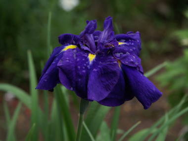 アヤメの仲間はとても種類が多く、陸地で育つものから水辺で育つ種類があります。こちらで紹介しているハナショウブは水辺に近い湿った所に生息して育つ仲間です。花の咲く時期は梅雨頃で、菖蒲園に行くと沢山植えられた花が一斉に咲いている姿はとても見事です。特に梅雨の曇り空の中に咲いている紫色のハナショウブはとても美しく見えます。