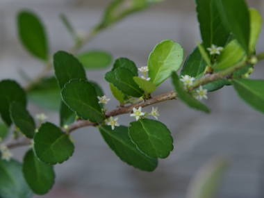 | ハリツルマサキは台湾や中国南部など海岸沿いの暖かい所に生息しています。半蔓性の低木で、高さは5mぐらいになります。秋に赤い実が成り美しいので、沖縄では観賞用の盆栽としてしてよく育てられているそうです。写真は突然変異種で実の形がハート型をしている事から、「ハートツリー」、「ハートが実る木」という名前で売られている事があります。 |