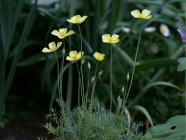 | ヒメハナビシソウはハナビシソウと同じ仲間ですが、花の大きさが2cmぐらいととても小さいので同じ仲間には見えません。ハナビシソウは株が大きくなるので、春にポット苗を見る事がありませんが、ヒメハナビシソウは苗がコンパクトなので春に苗が売られているのを見かける事があります。別名ではミニアチュア・サンデューという名前で売られている事もあります。 |