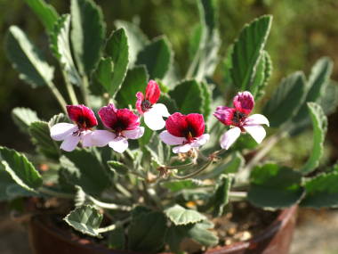| パンジーゼラニウムは多年草の植物です。高さは10cmから20cmぐらいで、花の大きさは3cmぐらいです。花色は上の花びらが赤く、下の花びらは白いツートンをしています。他にツートンではない、単色をした種類も売られている事があります。名前の由来は、ゼラニウムと同じ仲間で、花の形がパンジーに似ているのでこのような名前になっています。 |