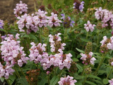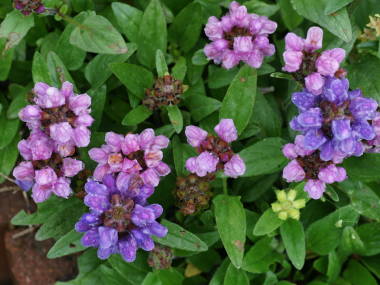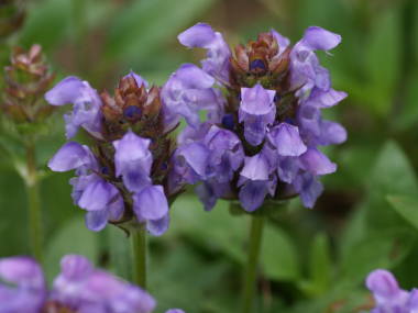 | ウツボグサの仲間で、こちらはヨーロッパなどが原産地のセイヨウウツボグサです。暑さ寒さには強いですが、やや高温多湿に弱く、梅雨がやや苦手な植物です。それを除けば、庭に植えておくとよく増えて育ちます。冬は地上部を枯らせて宿根することから、宿根プルネラとも呼ばれています。花は5月から6月頃によく咲かせ、その後は秋までポツリポツリと咲き続ける感じです。 |