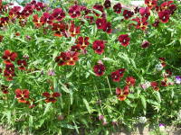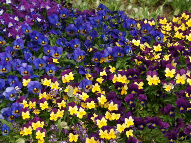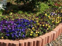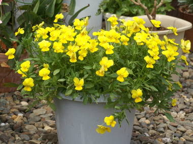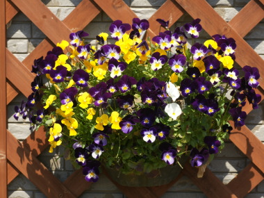 | 花の少ない冬を彩るおなじみの花です。うちにも毎年プランターや鉢植えに植えています。最近は色々な種類があり、上二枚の花びらがうさぎの耳のように立っているバニービオラ。花色が白からブルーに変化、オレンジからブルーに変化する色変わりビオラ、サントリーが開発したフィオリーナという花数がとても多いこんもりビオラ、一株で沢山花が咲き65cmプランターに二株植えれば十分な王様ビオラ、花に芳香のある芳香ビオラ、横に広がって枝垂れ咲きするビオラなど色々あります。育てるのはパンジーと同じで、普通の種類同士を比べるとパンジーの方が花が大きく、ビオラの方が花が小さいですが、ビオラの方が花の数が多いです。 |