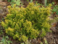 | エリカの近縁種で、エリカの仲間として売られていることもあります。こちらも酸性土壌を好み、カルーナは耐寒性が強く氷点下20度ぐらいまで耐えます。主に花を楽しむタイプと紅葉を楽しむタイプがあり、いろいろな花色の園芸品種が出回っています。紅葉カルーナとして売られている種類も色々で、秋に黄色く紅葉するカルーナ・ゴールドヘイズや赤く紅葉するカルーナ・ウインターレッドなどがあります。紅葉した葉色は落葉するのではなく、春になると元の色に戻ります。エリカとカルーナの見分け方は、写真のように葉を見比べると違いが分かり、針葉樹のような葉をしています。生息地は冷涼で湿潤な荒地に沢山のカルーナが生えて草原のように見えるそうです。とても暑さを嫌い暖地では夏越しが困難とされていたのですが、最近は品種改良で暖地でも夏を越えるものがあるようです。 |