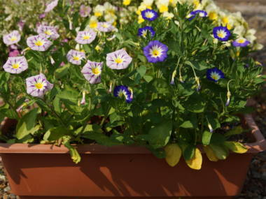 コンボルブルス・トリカラーの育て方場所日当たりを好むので、日当たりのよい所で育てます。暖地では特に霜よけせずに越冬します。種まき