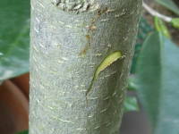 柿の木の育て方植え付け日当たりを好むので日当たりのよい所に植え付けます。植え付けの時期は11月〜3月頃に行うのが理想的です。大きめの穴を掘って牛糞や腐葉土を混ぜ込んで植え付けます。水やり植え付け後はしばらく乾かし過ぎないように注意しますが、その後は特に与える必要はありません。肥料寒肥を12月から2月頃に、追肥として7月頃に骨粉入り固形油粕などを株元にまくぐらいでかまいません。剪定花芽は7月頃から形成され、翌年の春に花を咲かせ秋に実を成らせます。剪定の時期は1月から2月の落葉期が適期で、すでにこの時期は前年に伸びた枝先2、3芽ぐらいに花芽を持っているので、枝先ばかりを切ってしまうと、花が咲かずに実が成らないので注意してください。前年に実を着けた古い枝や、込み入った不要枝などを元や分かれ目で切るぐらいにします。もし高さを抑えたい場合は、上に伸びる枝は切り戻して、横に枝が伸びるようにするとよいです。接ぎ木渋柿やあまり甘くない柿の木を台木に、美味しい柿の穂木を使って接ぎ木すると、穂木と同じ味の柿が成ります。うちの柿も小さくてあまり甘くない柿なので、近所の人に美味しい柿の挿し穂をもらって接ぎ木してみたので紹介します。