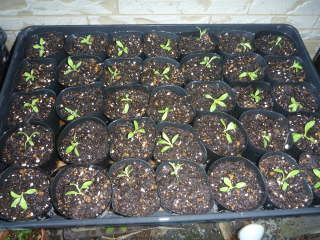 秋に種まきしたポット苗 |