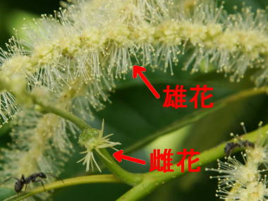 雌花:2月頃〜、雄花:7月〜(前年枝から伸びた枝先につく) |