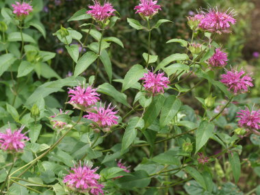 モナルダの育て方苗の植え付け苗が売られている事があるので 、入手したら植えつけます。鉢植え用土は花の培養土に植え付ければよいと思います。自分で作る場合は赤玉土(小粒)6、腐葉土3、ピートモス1などに植え付けます。苗の大きさにもよりますが、大きくなるのでやや大きめの鉢がよいと思います。65cmプランターでは2株もあればよいと思います。花壇午前中の日光があたるような半日陰でも育ちますが、日当たりがよい方がよい花が咲きます。株がよく増えるので、株間が40cm〜50cmぐらいになるよう広めに、苦土石灰、元肥に牛糞などを、水はけが悪いようなら腐葉土を混ぜ込んで植え付けます。春から秋の管理鉢植え日当たりのよい所を好むので、日当たりのよい所で育てます。午前中の日光が当たるような半日陰でも育ちますが、できるだけ日に当てた方がよい花が咲きます。水やりはやや湿った所を好むので、生育期の春や秋は鉢植えでは鉢土の表面が乾いたら与えます。夏はよく乾くので毎日の水やりになります。肥料は春から秋に緩効性の化成肥料や液体肥料を定期的に与えます。花壇水やりは植えつけ後はしばらく乾かし過ぎないように注意しますが、その後は夏に雨が降らずに乾き過ぎるようなら与えるぐらいでよいです。肥料は4月頃、6月頃、9月頃に骨粉入りの固形油粕などを蒔くぐらいでよいです。植え替えよく増えるので、鉢植えでは毎年植え替えた方がよいと思います。一回りから二回りぐらい大きな鉢に植え替えたり、株分けをして同じぐらいの鉢に植え替えます。庭でも2年以上すると株が増えるので、株分けをするか、増えすぎた所をスコップで切り掘り上げて減らしてもよいです。時期は春の3月から4月頃に行うのが理想的ですが、秋の9月下旬から10月頃にも行えます。用土などは植え付けの項目と同じです。花がら摘み種を採らないのであれば、咲き終わった花は、種に養分を奪わらないよう摘み取るとよいです。病気や害虫葉が白くなってウドンコ病になってしまう事があります。定期的にダコニール1000などの殺菌剤で予防しておくとよいです。その他は花の病気や害虫のページを参考にしてください。冬の管理