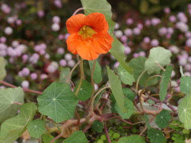 花、葉、実はビタミンC、鉄分などの栄養があり、ハーブとして料理に使用する事ができます。辛みがあるので、マスタード代わりにサラダやサンドイッチなどに、丸い葉を飾りとしても利用されています。 |