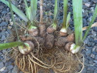 軟腐病に注意用土が過湿になって窒素分の多い肥料を与えると、軟腐病にかりやすいので注意してください。この病気になってしまうと、球根が腐って葉が枯れてしまいます。他の球根に伝染してしまうので、移らないよう掘りあげて焼却処分します。窒素分の多い肥料は与えないようにして、鉢植えでは梅雨の長雨などには当てないよう、軒下などに移動しておくとよいです。庭植えでも梅雨のシーズンに雨よけをすると、ある程度予防する事ができます。その他、病気や害虫については花の病気と害虫駆除を参考にしてください。 |