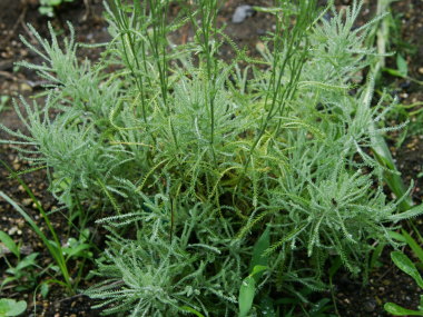 | 地中海沿岸に自生している常緑低木です。花は6月頃に小さな丸い花を咲かせ、切れ込みのある葉が美しい事からカラーリーフとして観賞する事もできます。全体に芳香がある事からハーブとして利用されており、葉を乾燥させて小さな袋に入れてポプリにされたり、防虫効果もあるのでタンスなどに入れて使われています。種類は主に銀葉のS.chamaecyparissu、緑葉のS.virensという品種があります。乾燥した所に生息しているのでやや過湿に弱いですが、どちらかと言うと緑葉の方が強いです。ヨーロッパではハーブ園のボーダー花壇に利用されたりしています。 |