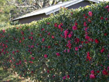 サザンカの育て方植え付け3月から4月頃、9月中頃から10月頃に行うとよいです。日当たりのよい所から午前中の日光がよく当たる半日陰で、夏は西日を避けた所の方がよいです。穴を掘り、掘り上げた土に腐葉土と完熟牛糞などの堆肥を混ぜ込み、生垣の場合は間隔を30cmから40cmぐらいあけて植え付け、強風で倒れないよう支柱で支えておきます。鉢植えの場合は赤玉土、鹿沼土、腐葉土の等量などを使って植え付けます。庭での管理肥料は1月から2月頃の寒肥、秋の9月頃に骨粉入りの固形油粕などを与えます。水やりは植え付け後はしばらく乾かし過ぎないように注意して、花の時期は乾き過ぎると開花に影響する事があるので、雨が降らず乾き過ぎるようなら与えた方がよいです。鉢植えの管理夏は強い日差しを避けた明るい所で育てますが、その他の時期は日当たりのよい所から半日陰に置いて育てます。肥料は4月頃、6月頃、9月頃に緩効性の化成肥料や骨粉入りの固形油粕などを置き肥するとよいです。水やりは鉢土の表面が乾けば与えます。過湿はよくないですが、花の時期に水が不足すると開花に影響する事があるので注意してください。剪定・刈り込み