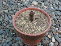 | 鉢植えの用土は赤玉土6、腐葉土3、パーライトか川砂1ぐらいで首が出るぐらいに、鉢は小さめの素焼きで4号鉢に1球を目安に植えつけます。花壇への植え付けの場合は深さ5cm〜10cmぐらい、植え付け間隔は20cmぐらいに日当たりと水はけのよい場所に植え付ければよいそうです。時期は3月から4月頃がよいです。スプレケリアはアマリリスと近縁の種で多湿、暑さ、寒さを嫌うので、鉢植えで育てた方が移動できて安全だと思います。 |