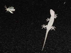 夜行性なので明かりのある窓などにへばりついて、光に寄ってくる小さな蛾などを食べています。足の裏には吸盤があって、垂直に登る事が出来ます。見た目が少し気持ち悪いですが、かわいい目をした大人しい生き物で、人に害を及ぼす事はありません。窓を開けると落ちてくる事があり、捕まえようとすると這うようにすばしっこく逃げてゆきます。