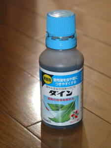 水だけで薄めると葉に付着せずに流れ落ちてしまう事があります。展着剤を混ぜて作ると葉に着きやすくなるので効果が高くなります。液体でピペットで取って水溶液に混ぜて利用します。
