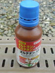 オルトランとスミチオンが混合されたもので、主にツツジグンバイムシのために使っています。ツツジに発生して葉がハダニに吸われたように白くなり、葉裏を見ると黒い糞があって軍配のような形をした小さな虫がいます。卵に薬剤が効かないのか、すぐに再発して困ってしまいます。ベニカ水溶剤にも効果があるのですが、こちらの方が効きがよいように思えます。他にアブラムシ、ケムシ、カイガラムシにも効果がありますが、アブラナ科の植物にかかると薬害が出る事があるので避けた方がよいです。