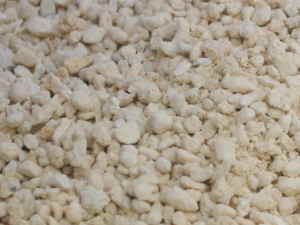 原鉱を高温で焼いた人工の軽い土です。保水性、排水性と通気性に優れ保肥力もあります。主に保水性や保肥力を高めるために鉢植えの用土に混ぜたり、軽いのでハンギングバスケットの用土に利用される事もあります。他に挿し木用の土としてピートモスと混ぜて使われたり、乾燥を嫌う球根を保存する土として利用される事もあります。