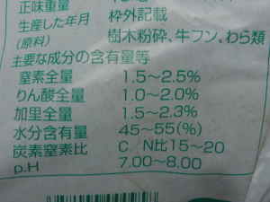 牛糞とオカクズ、バーク、藁などと混ぜて発酵させた堆肥です。肥料分が少しあって遅効性というすぐに効かず穏やかに効くタイプです。野菜の元肥として利用するには肥料分が少ないので、化成肥料などと併用される事が多いです。草花では肥料を多く必要としないものなら、元肥として利用すれば後は追肥で即効性の化成肥料を与えるだけて育つ種類も多いです。鉢植えの土に元肥として混ぜて利用される事もあり、草花では1割ぐらい混ぜて使われる事が多いです。