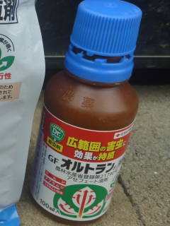 年に2回発生する事があるので、発生させない事が大切です。毎年4月から5月、7月から8月にオルトラン液剤を株元にまいておくと効果があります。この薬剤は葉に散布するのではなく、根から薬剤を吸い上げるので植物全体に殺虫効果があります。液剤は水で薄めて株元にまきます。