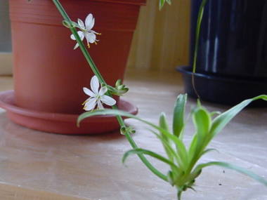 ある程度大きくならないと発生しません。また、日照不足だと発生し難くなるので午前中ぐらいは日光に当てた方がよいです。中斑よりも外葉オリヅルランの方が発生しやすい性質をしています。