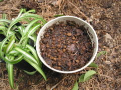 時期は春の4月中旬から6月頃に行うのが理想的です。2年に1回を目安に行いますが、鉢の底から根が出て根詰まりしていたら毎年でも行った方がよいです。無理して根を切らない程度に古土を取り除いて新しい土で植え替えます。必要なら切り分けて株分けする事もできます。鉢植えの種類は吊り鉢にすると子株がぶら下がるので人気がありますが、好みで高さのある鉢や普通の鉢を使ってもよいです。用土は市販されている観葉植物専用の土でかまいません。自分で作る場合は赤玉土(小粒)6、腐葉土4ぐらい、吊り鉢にしたい場合はピートモス6、バーミキュライト2、パーライト2などを使うと鉢を軽くできます。