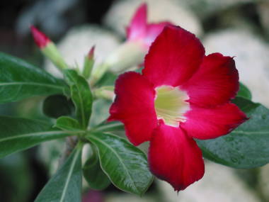 | 日本では砂漠のバラと呼ばれとても美しい花を咲かせます。雨の少ない砂漠地帯の岩場などに生えているので、幹には水分が蓄えられて膨らんでいます。現地では2m以上になり、鉢植えのユニークな姿がそのまま大きくなって生えているように見えます。花の咲く時期は気温の高い5月から9月頃で、熱帯の植物らしい光沢のある美しい花を咲かせます。幹に水分を蓄えているので乾燥には強く、少しぐらい水やりを忘れても枯れる事はまずありません。逆に与え過ぎる方が良くないぐらいです。 | ||||||||||||||||||||||||||||||||||||||||||||||||||||||||||||||||||||||||||||||||||||||||||||||||||||||||||||||||||||||||||||||||||||||||||||||||||||||||||||||||||||||||||||||||||||||||||||||||||||||||||||||||||||||||||||||||||||||||||||||||||||||||||||||||||||||||||||||||||||||||||||||||||||||||||||||||||||||||||||||||||||||||||||||||||