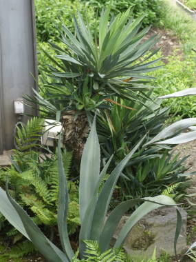 アガベ学名:Agave別名:リュウゼツラン(龍舌蘭) 科・属名:キジカクシ科・アガベ属 原産地:メキシコ 分類:常緑多年草、多肉植物 寒さ:やや弱い(0度以上) 暑さ:強い 日照:日向 耐陰性:なし |