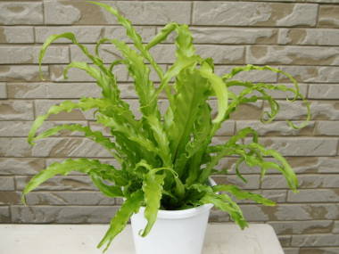 | アスプレニウムは着生シダの仲間で、世界に約700種類もあります。よく出回っている種類はアビスという名前で売られている、葉が広く光沢のある明るい色をしています。他に同じアビスの仲間で、葉に切れ込みがあるフィンブリアツム、葉が大きくウェーブしているエメラルドウェーブやプリカーツムなどの種類もあります。日本南部にも生息しているタニワタリ(谷渡り)やシマオオタニワタリ(島大谷渡り)と種類もあり、谷渡りというのは胞子が谷を渡って岩などに発芽する事から名付けられたそうです。耐陰性が強く、明るい日陰で育てる事ができるので、玄関などに置いて育てる事ができます。