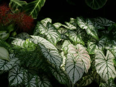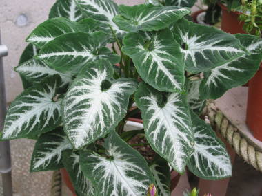 | 葉の色は白や赤っぽい斑入りが多く葉脈も美しい観葉植物です。熱帯アメリカ原産の寒さに弱い球根植物で、春から秋には葉がありますが、冬になると葉を落として球根だけで越冬します。葉の長さは種類によって20cm〜45cmぐらい、葉柄という長さ30cmから60cmぐらある先に葉がついています。球根の大きさは3cmから大きくなると9cmぐらいになり、子が発生して増えてゆきます。 | |||||||||||||||||||||||||||||||||||||||||||||||||||||||||||||||||||||||||||||||||||||||||||||||||||||||||||||||||||||||||||||||||||||||||||||||||||||||||||||||||||||||||||||||||||||||||||||||||||||||||||||||||||||||||||||||||||||||||||||||||||||||||||||||||||||||||||