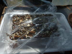 カラジュームの育て方置き場所生育期の5月から9月中旬は戸外の日当たりのよい場所で育てますが、真夏は日差しが強過ぎるので、午前中の柔らかい日差しに当てるぐらいにします。耐陰性はあって日陰でも育ちますが、日光が足りないと葉色が悪くなり貧弱に育ってしまいます。涼しくなった10月になったら、室内の日当たりのよい場所で育てます。15度以下になると葉が減ってゆくので、できるだけ室内の暖かい所に置いて球根を太らせます。葉がなくなってきたら水やりを断って、最低温度10度以上の暖かい場所で休眠させます。