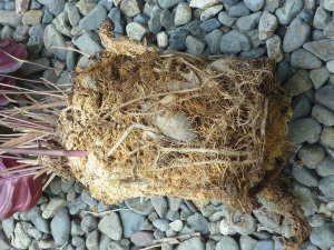 増やし方(株分け)子株が増えたら株分けで増やす事ができます。植え替えの時にはさみなどで、適度な大きさに切り分けるとよいです。3、4葉ずつ分けて複数の苗を作る事も出来ます。時期は植え替え時期と同じです。肥料春から秋まで緩効性の化成肥料や液体肥料を与えます。冬は生育を止めて必要としないので与えないようにします。その他は観葉植物の肥料のページをご覧下さい。冬の管理方法寒さに弱く12度以下の所では枯れてしまう事が多いです。暖房の効いた暖かい部屋に置いて、暖房を切ったら暖気の残る高い所に置くとよいです。それでも12度以下になりそうなら寝る前にバスタイルなどで包んだ湯たんぽと一緒にダンボールを被せたり、小さな鉢植えなら水槽に市販されているヒヨコ電球と一緒にに入れて蓋をして保温する方法などもあります。水やりは表面が乾いてから数日と控えめに、肥料は与えないようにします。強い日差しは嫌いますが、冬はレースカーテン越しの日光が当たるぐらいの所でもよいです。病気や害虫など葉が丸まる光の強すぎ、空中湿度の不足、強い風に当たると葉からの蒸散を防ごうと葉が丸まります。強い日差しは避けて霧吹きで湿度を与えながら育てるとよいと思います。ビニール温室などに入れておくと中の湿度が高くなるので、あまり霧吹きせずに湿度を保つ事が出来ます。また、根腐れすると水を吸えなくなり、葉が丸まってしまいます。適切な時期に葉の数を減らして植え替えするしかありません。 |