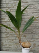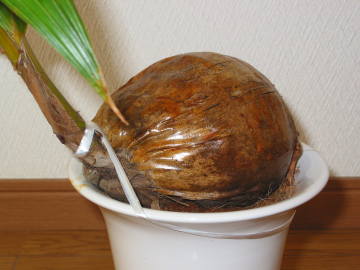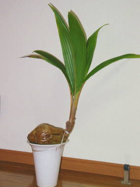 | ココヤシはココナツミルクでお馴染みの樹高が30mにもなる高木です。鉢の上にのった実から発芽した姿がなんともユーモラスで面白い姿をした観葉植物です。ココヤシの実は熟すと下に落ち、3か月〜半年ぐらいかけて実から芽が出てくるそうで、根は実から延びています。ココヤシは実の重さは1Kg以上あるそうで、ココナツミルクとして飲まれるのはまだ実が未熟の頃に収穫されて飲まれるそうです。実のまま飲んで見たいですが、実は売られていないようで缶詰なら販売されています。育てるのは寒さに弱いので、冬をできるだけ暖かい所で越冬させないといけませんが、それを除けば育てるのはそう難しい事はありません。 | ||||||||||