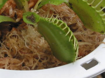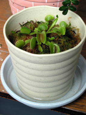 水やり上から水挿しなどで勢いよく水を与えると葉が閉じてしまうので、受け皿に水を貯めて腰水栽培するとよいです。一日中水が溜まった状態だと水温が高くなって根を傷めるので溜め過ぎないようにします。冬は腰水栽培を止めますが、用土を乾かさないよう注意して休眠させます。植え替え酸性土壌のやや湿った所を好むので、用土は水苔の単用を利用したり、酸度無調整のピートモスと鹿沼土(小粒)の等量などを利用するとよいです。時期は1月から2月頃の休眠期に毎年行うとよいです。必要なら株分けをして、2.5号鉢から3号鉢に一株を目安に植え付けます。肥料肥料を与える必要はありません。与えると調子が悪くなるようです。かわりに虫を与えた方がよさそうですが、葉の寿命が縮んでしまうので与えないようにします。増やし方株分け