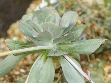 半砂漠地帯に生育するので過湿を嫌います。冬と夏は生育しないので、冬は月に1回の水やり、日本の夏は苦手なので、月に1、2回ぐらいとかなり控えめに水やりします。春の3月から6月頃、夏の気温が下がった9月頃は表面が白く乾いてから、更に2、3日してからの水やりにします。葉に水分を蓄えているので、乾燥にはとても強いです。