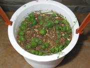 水やり多肉植物で玉に水分を蓄えているので乾燥には比較的強く、水を与え過ぎると腐れてくる事があるので注意してください。生育期の春から秋まで、鉢土の表面が白く乾いてから与えます。夏は高温で生育が止まる事があるので、与え過ぎないように注意してください。冬は寒さであまり生育しないので、表面が白くしっかり乾いて更に数日してから与えるぐらいにして、かなり控えめでかまいません。植え替え2年ぐらいを目安に根が詰まって鉢底から根が出てきたら植え替えます。時期は春の4月から5月に行うのが理想的です。用土は水はけの良い用土に、花の培養土に水はけをよくするために赤玉土(小粒)とパーライトを各2割ずつ混ぜたり、自分で作る場合は赤玉土5(小粒)、パーライト3、ピートモス2などで植え替えます。切り戻し時期は春に行うとよいです。長く伸び過ぎてしまったら、適度な長さに切り戻します。また、株元の葉が少なくなって姿が乱れたら、茎の元の方を数節残して切り戻して植え替えるとよいです。切った先は挿し木に利用できます。増やし方(挿し木)葉の間の茎を埋めると3週間ぐらいで根が出てきます。玉を何個かつけた適当な長さの挿し穂を何本か用意して、茎が用土に埋まるように這わせます。用土は川砂の単用やパーライト6、ピートモス4など、水はけのよい用土に挿します。過湿にならないよう水やりに注意しますが、多肉植物としてはやや水を必要とするので、発根するまでは乾かし過ぎないように注意します。時期は4月から5月ぐらに行うのが理想的ですが、暖地では涼しくなった秋にも行えます。