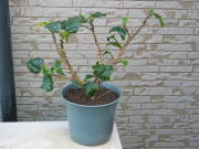 増やし方(挿し木)挿し木で増やす事が出来ます。気温が高ければいつでも行えますが、5月から7月上旬頃に行うと秋までに根が増えてよい苗ができます。挿し穂は矮化剤が効いていると着きにくいので、できるだけ効果の薄れた節々の間隔があいた枝を利用するとよいです。枝に2,3節分ある挿し穂を用意して、用土に埋めるために一番下の節の葉を取っておきます。葉の面積が大きいと萎れやすいので、半部ぐらいの面積になるようにハサミで切っておくとよいです。用土は赤玉土(小粒)8割と、ピートモスを2割ぐらい混ぜたものでよく、ポットに1,2本を挿したり平鉢に複数を挿してもよいです。一ヶ月もすれば発根するので小鉢に鉢上げします。高さが15cmぐらいになったら先端を摘心して枝の数を増やすようにします。その他は挿し木のページを参考にしてください。