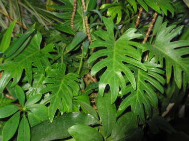 | クッカバラの葉は厚く光沢もあり、ギザギザに切れ込んだ変わった形の葉をしています。熱帯の植物らしくエキゾチックな姿をしており、イモのような茎をしていています。耐陰性があるので半日陰に置いて育てる事ができ、寒さにも比較的強いです。写真はクッカバラというフィロデンドロンの中でとても人がある種類です。 | |||||