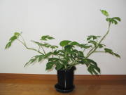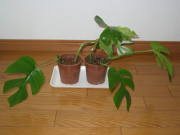 肥料生育期の春から秋まで、緩効性の化成肥料などを置き肥したり、定期的に液体肥料を与えます。その他は観葉植物の肥料のページをご覧下さい。冬の管理方法寒さには比較的強い方で、暖房のあたる明るい場所で育てれば特に難しい事はありません。冬は生育が止まるので、水を与え過ぎて根腐れさせないよう注意して、肥料は与えないようにします。暖かい時間帯に葉水を与えて葉の乾燥を防ぐように心がけて育てるとよいです。空中湿度を好むので、ビニール温室の中で育てると気根が長く伸びてきます。その他は観葉植物の冬の管理をご覧下さい。冬を越えたモンステラ比較的寒さに強い観葉植物で、冬を越えても多少葉が減るぐらいで、あまり姿を乱しません。もし姿が乱れている場合は、春に必要なら葉の減った蔓を切り戻して植え替えます。あまりにも調子が悪い場合は、挿し木や茎伏せをして仕立て直しすとよいと思います。 |