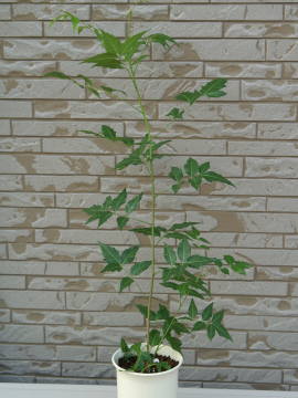 水やり生育期の春から秋は、鉢土の表面が白く乾いたらたっぷりと与えます。秋になって涼しくなると徐々に水を吸わなくなってくるので、徐々にに水やり回数を控え、冬は鉢土の表面が乾いてから2、3日してから水を与え、乾燥気味に管理します。冬の水の与え過ぎは根腐れの原因になるので、与え過ぎないように注意してください。ニームは冬は暖房など空気が乾燥すると、葉が落ちやすいようなので、時々霧吹きで葉水を与えながら育てます。冬を越えて暖かくなってくると、徐々に水を吸いはじめて新芽が出てくるので、鉢土の表面が乾いたらたっぷりとに与えます。その他、詳しくは観葉植物の水やりをご覧ください。植え替え鉢の底から根が出て根詰まり気味か、2年以上植え替えていないものは植え替えます。時期は春の5月から6月頃が理想的です。用土は市販されている観葉植物専用の土、自分で作る場合は、赤玉土(小粒)6、腐葉土4ぐらいでよいです。その他、詳しくは観葉植物の植え替えのページをご覧ください。ハイドロカルチャーで育てているものは、ハイドロカルチャーの植え替えを参考にしてください。肥料春から秋まで液体肥料や緩効性の化成肥料などを与えます。その他は観葉植物の肥料のページをご覧下さい。切り戻し枝が伸び過ぎたり、冬に葉が落ちて樹形が乱れてしまったら、将来の樹形をイメージして切り戻します。切った所の節付近から新芽が伸びてきます。切った先は挿し木に利用できます。時期は植え替え時期の5月から6月頃までに行ってしまうのがよいと思います。その他は切り戻しのページをご覧ください。増やし方(挿し木)挿し木をして増やす事ができます。2、3節分の挿し穂を用意して、一番下の葉を取って、その節が用土に埋まるように挿します。時期は5月から6月中旬頃に行うのが理想的です。その他、詳しくは挿し木のページをご覧ください。冬を越えたニーム冬を越えたニームは葉が落ちてしまう事があります。茎が生きていればまた葉を茂らせるので、根詰まりしているようなら植え替えシーズンに植え替えをして、必要なら切り戻しをして仕立て直します。 |