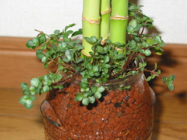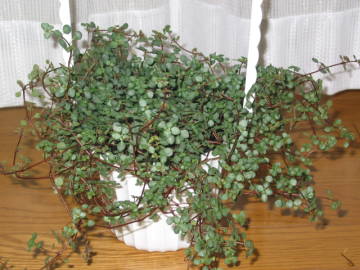 | ピレア属は熱帯、温帯に200種類以上があり、匍匐性のものが多いです。グラウカ・グレイジーも匍匐性で、やや灰色をした小さな葉を沢山付けます。長鉢に植えて下に垂らしたり、吊り鉢に利用したりも出来ます。 | |||||