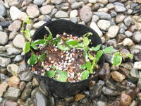 水やり乾燥、過湿とも嫌います。生育期の4月中旬から10月中旬頃までは表面が乾いてきたらたっぷりと与えます。いつも湿った状態を嫌い、また生育期に水切れさせると葉が落ちるので夏場の水切れには注意してください。最低温度が20度以下になると徐々に水を吸わなくなるので、徐々に水やり間隔をあけて行きます。冬は休眠期であまり水を吸わなくなるので、表面が白く乾いてからの水やりにしてやや乾燥気味に管理します。湿度を好みますので、年間を通じで霧吹きで加湿して育てた方がよいです。その他、詳しくは観葉植物の水やりをご覧ください。植え替え、植え付け底から根が出ていて根詰まり気味の株は植え替えをします。プミラは1、2年に一度ぐらいは植え替えをします。時期は4月上旬から6月頃に行うのが理想的です。土は観葉植物専用の土、自分で作る場合は、赤玉土(小粒)6、腐葉土2、ピートモス2ぐらいのやや保水性のよい用土がよいです。肥料切れさせないよう、あればマグァンプK(中粒)などを混ぜ込んで植え付けるとよいです。その他、植え替えについては観葉植物の植え替えのページをご覧ください。増やし方(挿し木)