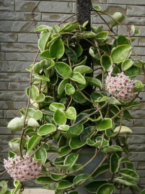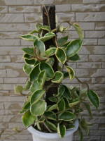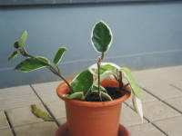 | 200種ぐらいあるホヤの仲間のつる性植物です。主に出回っているのはフイリサクラランという種類で、緑の葉に白い斑が混じっています。斑は外斑と中斑の二タイプがあり、上のは外斑のタイプになります。サクラランという名前は、桜色の花を咲かすので、このような名前がついています。花は長く伸びた蔓に咲く性質があるので、ある程度大きくならないと花は咲きませんが、花がなくても斑入りの葉が美しく観葉植物として楽しむ事ができます。育てるのも耐寒性が比較的強く育てやすい観葉植物です。ホヤ・カーリーはサクラランと同じ種類で、葉を挿して根を出して売られていたものです。この葉だけ育てても蔓は伸びてきませんが、ハート型の葉が女性に人気があります。基本的な育て方はサクラランと同じです。 | |||||||||||