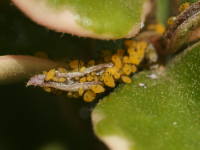 肥料春から秋まで、花用の緩効性化成肥料や液体肥料などを与えます。その他は観葉植物の肥料のページをご覧下さい。冬の管理方法観葉植物の冬の管理をご覧下さい。病気や害虫など花が咲かないサクラランは長く伸びた蔓に花を咲かせる性質があります。花が終わってもなるべく蔓を切らないように注意してください。また、強い日差しを嫌いますが、あまり暗いと花が付き難くなります。夏の強い日差しは注意しますが、午前中の日光に当てるぐらいに育てます。アブラムシ
