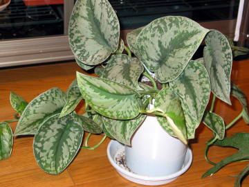 シラフカズラ学名:Scindapsus pictus別名:スキンダプサス 科・属名:サトイモ科・スキンダプサス属 原産地:マレー諸島 分類:常緑蔓性多年草 寒さ:弱い(10度以上) 暑さ:強い 日照:明るい日陰 耐陰性:あり 通販:楽天市場にあり |