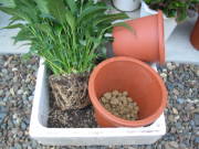 水やり生育期の春から秋は、鉢土の表面が乾いてきたらたっぷりとあげます。スパティフィラムは初夏から初秋の生育期はとても水を吸い上げますので、水切れには注意してください。秋の最低気温が20度を下回ってくるとだんだんと水を吸い上げなくなりますので、徐々に水やり回数を減らしていきます。真冬は鉢土の表面が乾いてから与えます。真冬の水の与え過ぎは根腐れの原因になるので注意してください。その他、詳しくは観葉植物の水やりをご覧ください。植え替え毎年植え替えをします。スパティフィラムはとても根のスピードが速く、すぐに根詰まりをするので注意してください。根詰まりすると花つきが悪くなってきます。植え替えの時期は5月〜9月までに行ないます。用土は水苔や観葉植物専用の土を使用すればよいと思います。自分は赤玉土(小粒)6、腐葉土3、パーライト1ぐらいを使っています。下に大まかに植え替えの例を書いていますので、よかったら参考にしてください。その他、詳しくは観葉植物の植え替えのページをご覧ください。植え替えの例通常の観葉植物の植え替えは3分の1ぐらいの古い土を取り除いてから行ないますが、スパティフィラムは肥料の成分が残っている上の部分の土を取り除くだけでよいです。写真のスパティフィラムはそう酷く根が張っていなかったので、一回り大きな鉢に植え替えていますが、もっと根の張っている株を植え替える場合は二回り大きな鉢に植え替えるか、できれば株分けをして鉢に余裕を持たせた方がよいです。根詰まりすると花が咲き難くなります。秋に植え替えを行なう場合は、その後の生育期が短いので一回り大きな鉢に植えて、春になったら必要なら株分けをして植え替えればよいと思います。(写真は花がついてますが、花が付いている時期の植え替えは控えた方がよいです)