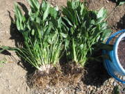 増やし方(株分け)株を増やしたい場合や、株が大きくなり過ぎた場合は、株分けをします。時期は植え替えと一緒に行います。鉢から株を抜いたら、水の入ったバケツに漬けて土をきれいに取り除きます。あとは茎の出方をよく見て、丁寧にさみを使って切り分けます。もし切り口の腐りが気になるようでしたら、木灰を塗ってふたをするとよいです。下の写真ははさみでは切り難かったので、包丁を使って切り分けました。根を切るわけですから、その後は何枚か葉が黄ばんで落ちますが、しばらくすると落ち着きます。あまり酷いようでしたら、1週間ぐらい穴のあけたビニール袋を被せるなどして、葉からの蒸散を抑えてください。
