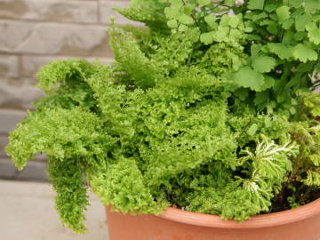 | ネフロレピスは40種ほどがあり、地上や木に着生して育っています。写真のネフロレピス・ツデーは前に育てていたシダの仲間です。当時はツデーシダという名前で出回っており、シダの葉がちぢれて伸びるのが気に入って購入しました。最近は別の種類のネフロレピスも見かけるようになり、葉の丸いネフロレピス・ダッフィー、葉が思いっきり縮れたネフロレピス・スコッチモスなどを見かけます。水を好む観葉植物で、ネフロレピス・スコッチモスは特に水を好むのか、腰水されて鉢底から水を吸わせて売られているのを見かける事があります。 | |||||||||||||