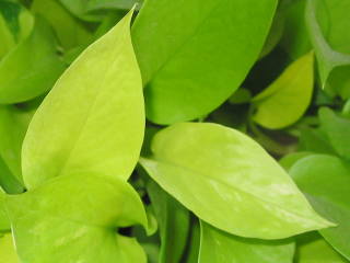 | ポトス・ライムは観葉植物として育てられる、熱帯性のつる性植物です。普通のポトス(ゴールデンポトス)と同じ仲間で斑はなく、葉の全体がライム色をしています。若い葉は特に明るくて目立ち、部屋が明るい感じになります。ヘゴ仕立てにして蔓を登らせたり、吊り鉢や高さのある鉢に植えて蔓を垂らして楽まれます。熱帯植物なので寒さに弱いですが、比較的育てやすい観葉植物です。 | ||